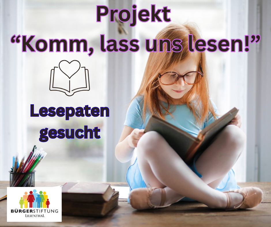 Die Bürgerstiftung Lilienthal will mit dem Projekt „Komm, lass uns lesen!“ zur Förderung der Lesekompetenz und der Lesemotivation einen Beitrag dazu leisten, dass Kinder wieder Freude am Lesen entwickeln können und schon früh im Umgang mit Büchern Erfahrungen sammeln können. Dazu suchen wir Lesepaten und Lesepatinnen, die bereit sind, regelmäßig eine Kita zu besuchen und dort einer kleinen Gruppe von Kindern vorzulesen. Mehr Informationen finden Sie hier.